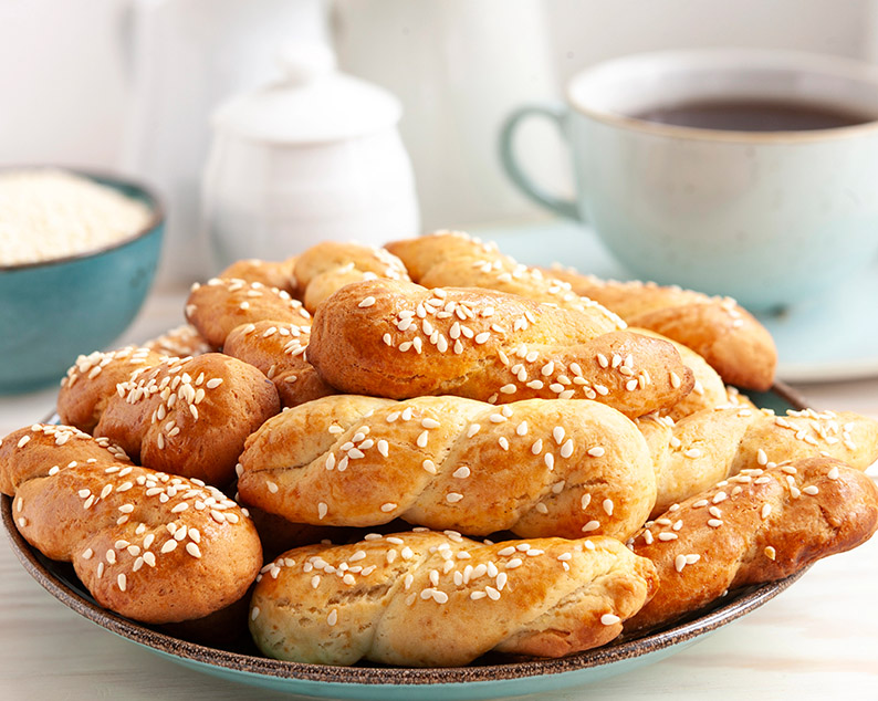 Tradicionalni grčki keksići, hrskavi spolja, a blago mekani unutra, sa karakterističnom aromom mahlepa i osvežavajućom notom pomorandže. Prave se najčešće za Uskrs, ali se toliko vole da se jedu tokom cele godine, uz kafu ili čaj. Njihova jednostavna lepota leži u obliku – često se prave u obliku spirala, pletenica ili malih štapića – i u mirisu koji širi toplinu i prazničnu atmosferu.